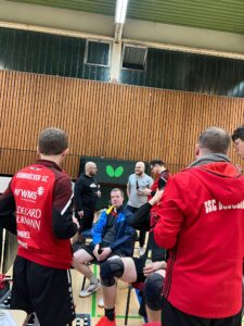 Das Spiel gegen Voxtrup ist letztendlich schnell erzählt, denn der Tabellenabstand sollte sich auch im Spielstand abbilden: Mit einem 9 zu Samuel sicherten wir uns einen ungefährdeten Punktegewinn. Nur der Autor unterlag der Nr. 1 des Gastgebers, Dennis Heinrich, der mit einem extrem sicheren Angriffsspiel Samuel vor große Probleme stellte. Dieser konnte sich im zweiten Satz zwar zwischenzeitlich noch zurückkämpfen, doch nach dem 12. Netzball verließ ihn dann auch etwas die Zuversicht (dem aufmerksamen Leser wird an dieser Stelle nicht entgangen sein, dass der Frust immer noch tief sitzen könnte).