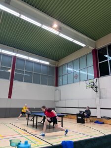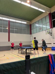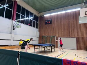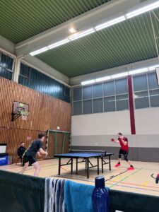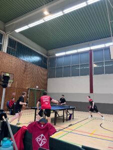 Das zahlte sich für uns tatsächlich direkt aus: Jonas spielte mit Finn ein sehr starkes Doppel gegen Lukas und Alex und brachte vor allem im 4. Satz das Spiel fast im Alleingang über die Ziellinie (3:1). Auf der anderen Seite gewannen Philipp und Julian ähnlich überzeugend gegen Adrian und Frederik (3:1).