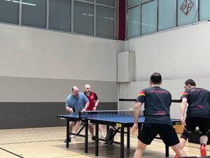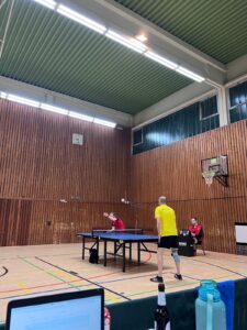 Die Doppel zumindest verliefen in unserem Sinne: Samuel und Adrian spielten nicht das erste Mal zusammen und gewannen souverän 3:0 gegen Adriaan Scharf und Torsten Waaga, und das eingespielte Doppel aus Philipp und Julian machte es ähnlich deutlich gegen Claus-Dieter Brinkmann und Noah Kersting (3:0).