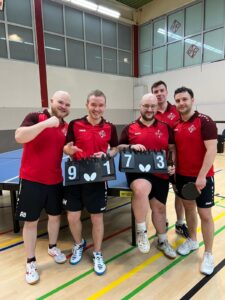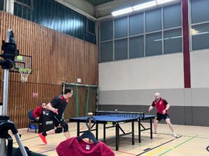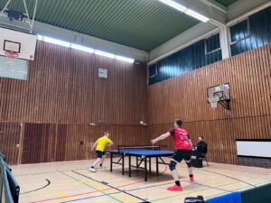 Wie so oft sollten die Doppel entscheidend sein, denn in der Folge entwickelte sich ein enges Duell, das die 5. Mannschaft nur hauchdünn für sich entscheiden konnte. Lukas Lemme bestätigte seine aktuell bestechende Form, zunächst mit einem beeindruckenden 3:0 Sieg gegen Philipp, und auch gegen Finn konnte er sich in einer umkämpften Partie denkbar knapp mit 11:9 im 5. Satz durchsetzen. Auch Alex bot unserem oberen Paarkreuz mehr als nur Paroli: Er zwang Finn in den 5. Satz und stellte auch Philipp vor große Probleme, musste aber in beiden Fällen am Ende seinem Gegner gratulieren (2:3 und 1:3).