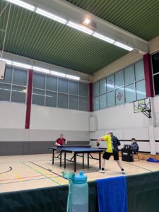 Hatte der Autor im Kreisligaderby noch den „Luxus“ gehabt, die Spiele von der Seitenlinie verfolgen und dadurch auch recht gut zusammenfassen zu können, so war ihm dies im Duell gegen Schölerberg nicht vergönnt. Tatsächlich kann er über das folgende Spiel nur sehr begrenzt Aussagen tätigen, denn er hat von Anfang bis Ende der Partie ununterbrochen selbst gespielt und daher die anderen Spiele überhaupt nicht mitbekommen. Glaubt man den Erzählungen der ZuschauerInnen und nicht zuletzt den Ergebnissen, so müssen Philipp, Julian und Minh (der für den kurzfristig ausgefallenen Finn spielte) absolut überragend gespielt haben: Nicht ein Satz ging in den Einzeln der Dreien an den Gegner, und auch das Doppel gewannen Julian und Philipp souverän gegen Jens Ole Heyen und Kevin Gehling (3:1). Bei Samuel und Minh hingegen sah das schon ganz anders aus: Gegen das meist leere Spiel von Michael Kull und Niklas Welp taten sie sich lange schwer, bevor sie am Ende die Partie noch knapp im 5. Satz für sich entscheiden konnten.