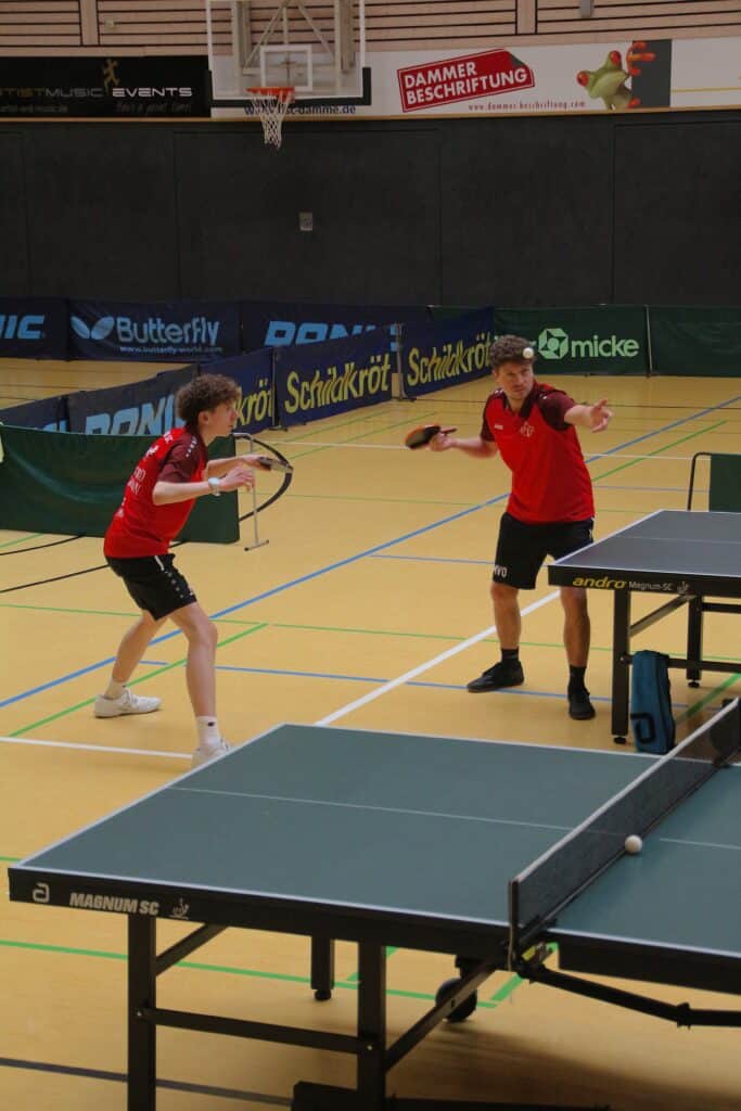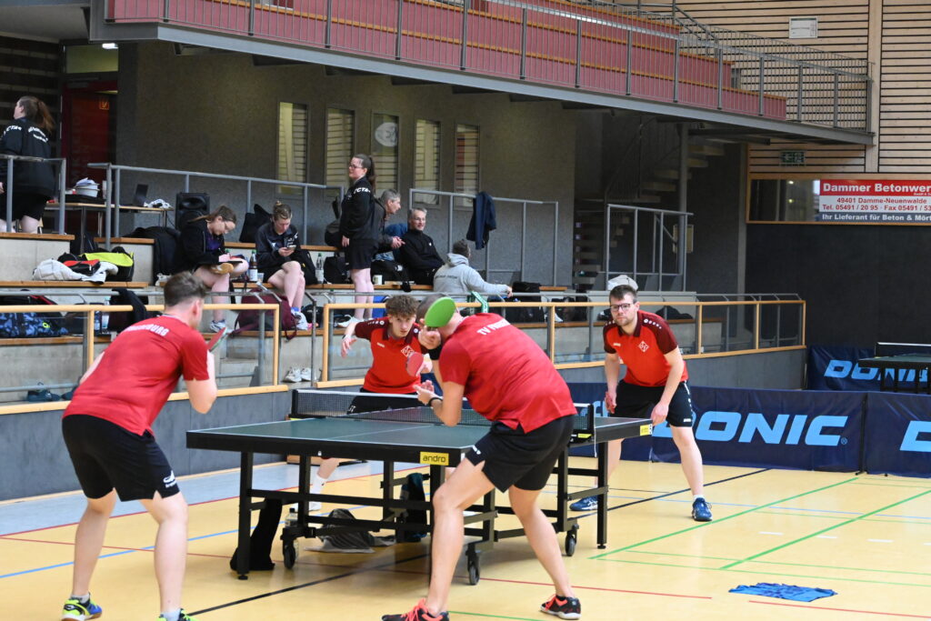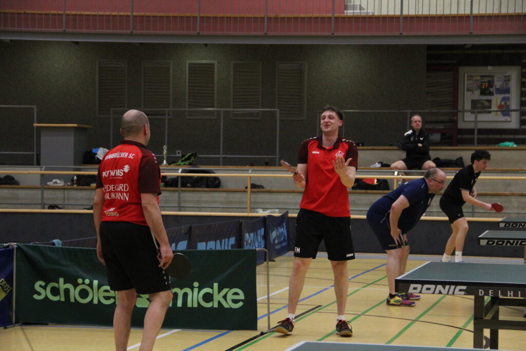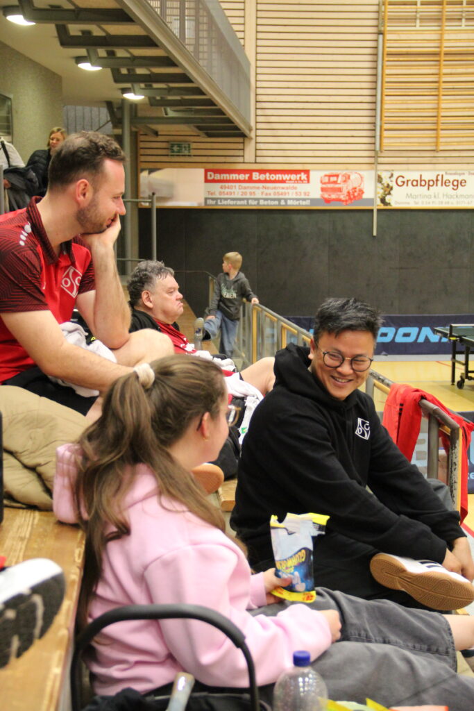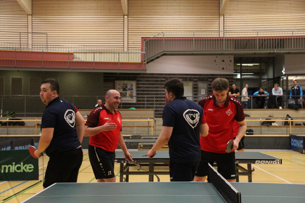 Deutlich besser lief es da schon für unsere 2. Mannschaft in der C-Konkurrenz. Das Dreiergespann aus Finn-Luca und Jan x2 aka Tekki & Pütti konnte sowohl gegen SV Union Lohne (4:1) als auch gegen den glorreichen SV Molbergen (4:3) einen Sieg verbuchen und unterlag im Finalspiel gegen Stirpe-Oelingen nur denkbar knapp mit 3:4. Besonders hervorzuheben ist die Leistung von Finn-Luca, der alle seine Einzel (und Doppel) für sich entscheiden konnte. Auch Tekki spielte stark, und Pütti hatte im pokalentscheidenden Abschlussspiel gegen Jimmy Asenheimer (Stirpe-Oelingen) sogar zwischenzeitlich die Nase vorn, bis ihm letztendlich allerdings die Körner ausgingen (2:3). Dass wir dabei nur hauchdünn gegen Stipe-Oelingen unterlagen, ist umso bemerkenswerter, als dass diese letztes Wochenende auch den Landespokal in Wolfsburg holen konnten.