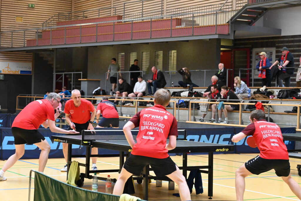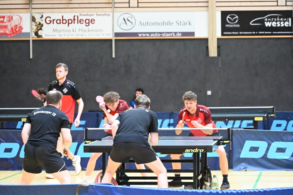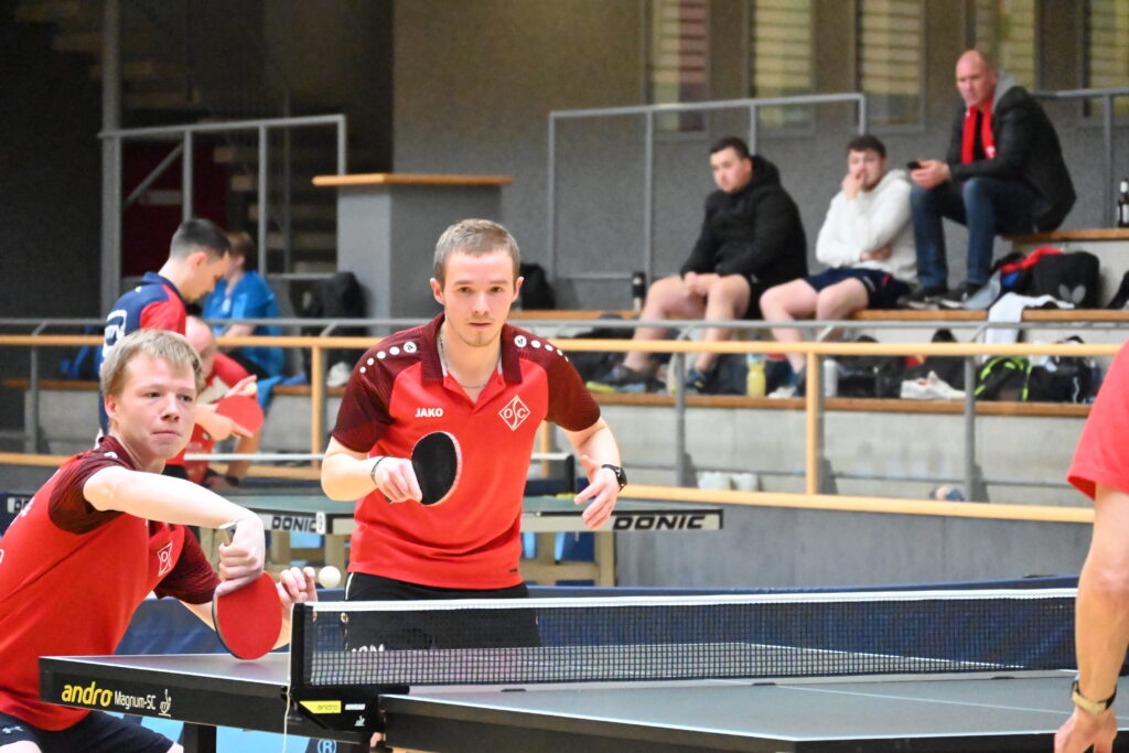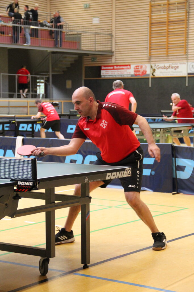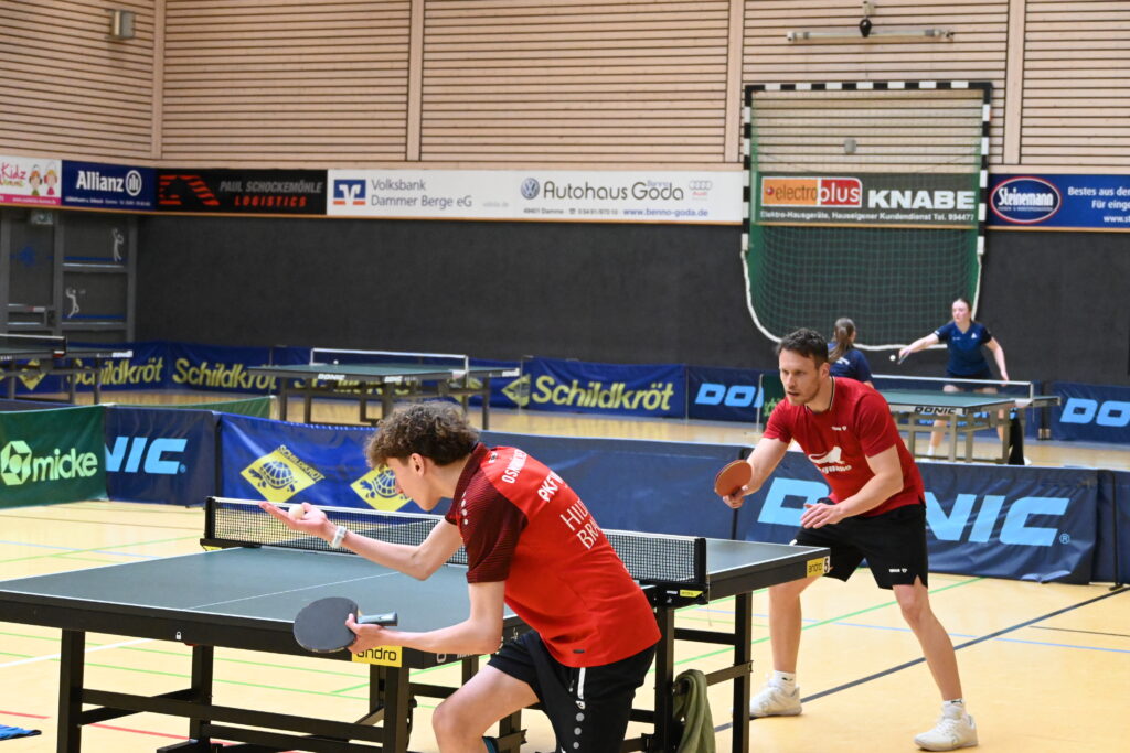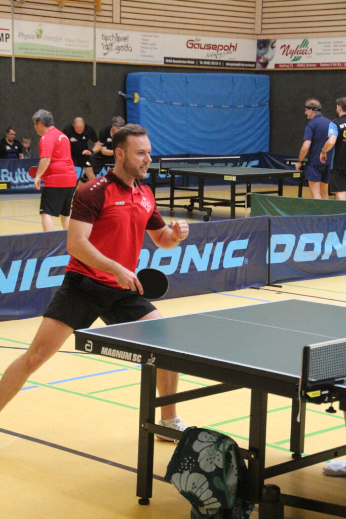 Deutlich besser lief es da schon für unsere 2. Mannschaft in der C-Konkurrenz. Das Dreiergespann aus Finn-Luca und Jan x2 aka Tekki & Pütti konnte sowohl gegen SV Union Lohne (4:1) als auch gegen den glorreichen SV Molbergen (4:3) einen Sieg verbuchen und unterlag im Finalspiel gegen Stirpe-Oelingen nur denkbar knapp mit 3:4. Besonders hervorzuheben ist die Leistung von Finn-Luca, der alle seine Einzel (und Doppel) für sich entscheiden konnte. Auch Tekki spielte stark, und Pütti hatte im pokalentscheidenden Abschlussspiel gegen Jimmy Asenheimer (Stirpe-Oelingen) sogar zwischenzeitlich die Nase vorn, bis ihm letztendlich allerdings die Körner ausgingen (2:3). Dass wir dabei nur hauchdünn gegen Stipe-Oelingen unterlagen, ist umso bemerkenswerter, als dass diese letztes Wochenende auch den Landespokal in Wolfsburg holen konnten.