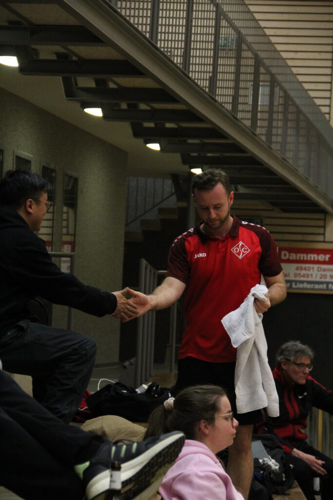 Gleich drei OSC-Mannschaften durften sich dieses Jahr in der Bezirkspokalendrunde versuchen. Sowohl die 1. und 2. als auch die 5. Mannschaft hatten sich fĂĽr das „Final-Four“ am 11. und 12. April in Damme qualifiziert – eine passende Gelegenheit, mit einem kleinen OSC-Fanclub die Halle unsicher zu machen und dabei auch ein paar Fotos zu schieĂźen. Dankenswerterweise hatten sowohl Maret als auch Adrian, der gleich an beiden Tagen mitfuhr, jeweils eine Kamera im Gepäck, weshalb der Bericht hier einmal mit weniger Text und dafĂĽr mehr Anschauungsmaterial auskommen darf. Besten Dank dafĂĽr, und natĂĽrlich auch an den herausragenden Support aus den sonstigen OSC-Reihen (neben Adrian und Maret namentlich Alex, Laureen, Lene und Minh).
