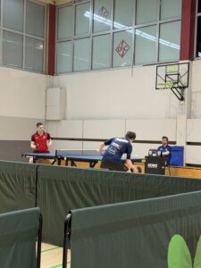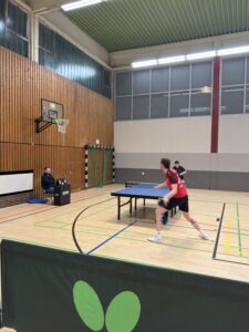 Die Partie startete aus unserer Sicht sehr erfreulich. Nach langer Zeit (zuletzt beim 9:1-Erfolg am 08.12.2025 ĂŒber TuS Bramsche) konnten wir mit einer 2:0 FĂŒhrung aus den Doppeln gehen. Witzigerweise wollten beide Teams bei den Doppeln taktieren, sodass am Ende doch die „erwarteten“ Paarungen gegeneinander antraten. Jan und Michael spielten stark auf und lieĂen Bartke/Burmeister beim klaren 3:0 keine Chancen. Etwas knapper ging es dagegen an Platte 2 zwischen Daniel/Patrick und Recker/Theede zu. Satz 1 und 2 gehen jeweils klar an eines der beiden Doppel (+3, -6), in Satz 3 holen sich Daniel und Patrick mit einem 11:8 erneut die SatzfĂŒhrung. Beim Stand von 10:8 im vierten Satz haben die beiden bereits erste MatchbĂ€lle, können diese allerdings nicht verwerten. Erst beim Stand von 13:12 wird der Sack endgĂŒltig zugemacht und die 2:0 FĂŒhrung eingetĂŒtet.