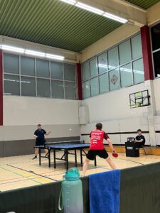 Und das sollte sich auch direkt bezahlt machen: Im Doppel gegen Welling/Dietzel suchte Samuel nach dem gewohnten Rucksack von Finn, fand ihn schließlich in Adrian und sprang kurzerhand hinein, denn an diesem Abend bestimmte vor allem Adrian das Doppel mit seinem guten Offensivspiel auf Vor- und Rückhand (3:0). Auf der anderen Seite lieferten sich das eingespielte Doppel aus Philipp und Julian ein enges Duell mit Kulic/Yankovyi, das sie letztendlich denkbar knapp mit 11:9 im 5. Satz für sich entscheiden konnten.